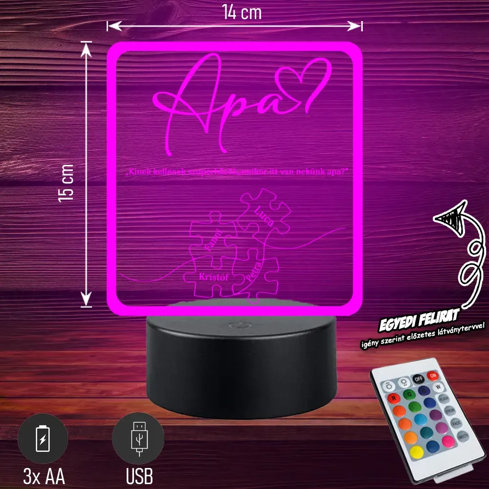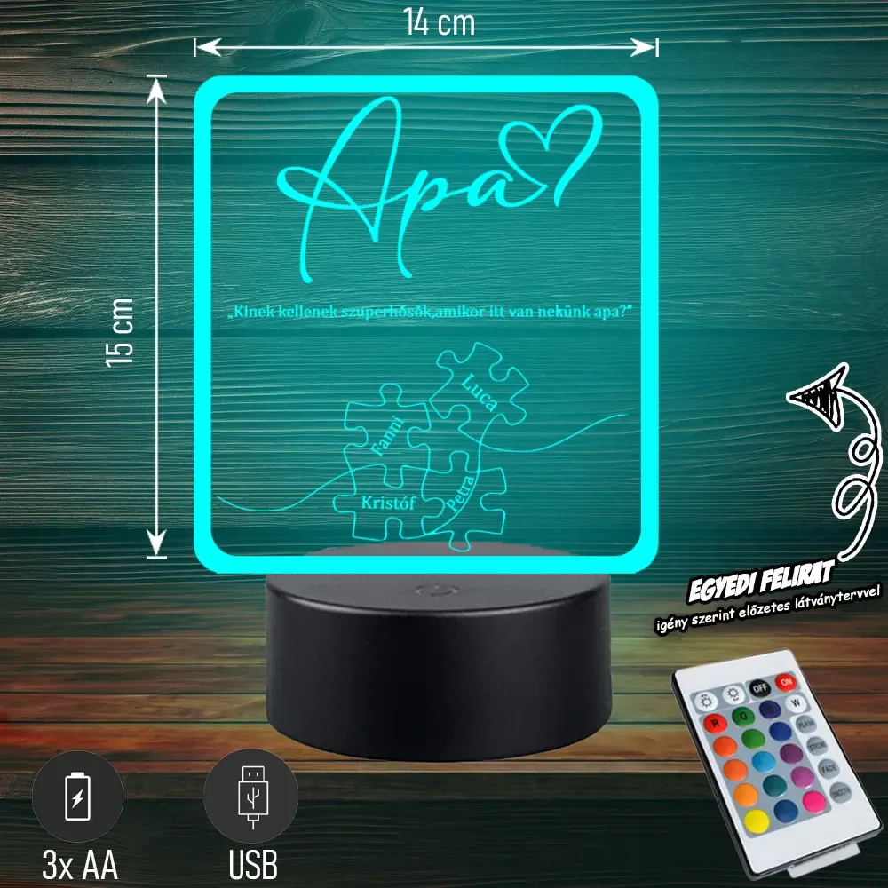 🧩💡 Egyedi 3D LED lámpa „Apa Puzzle” felirattal – tökéletes ajándék minden apának! 🎁 Bővebben