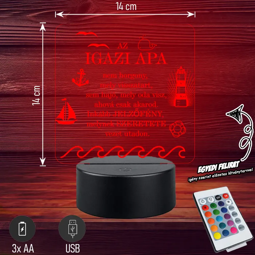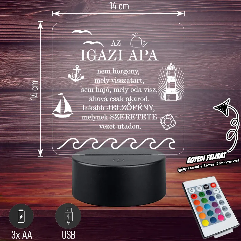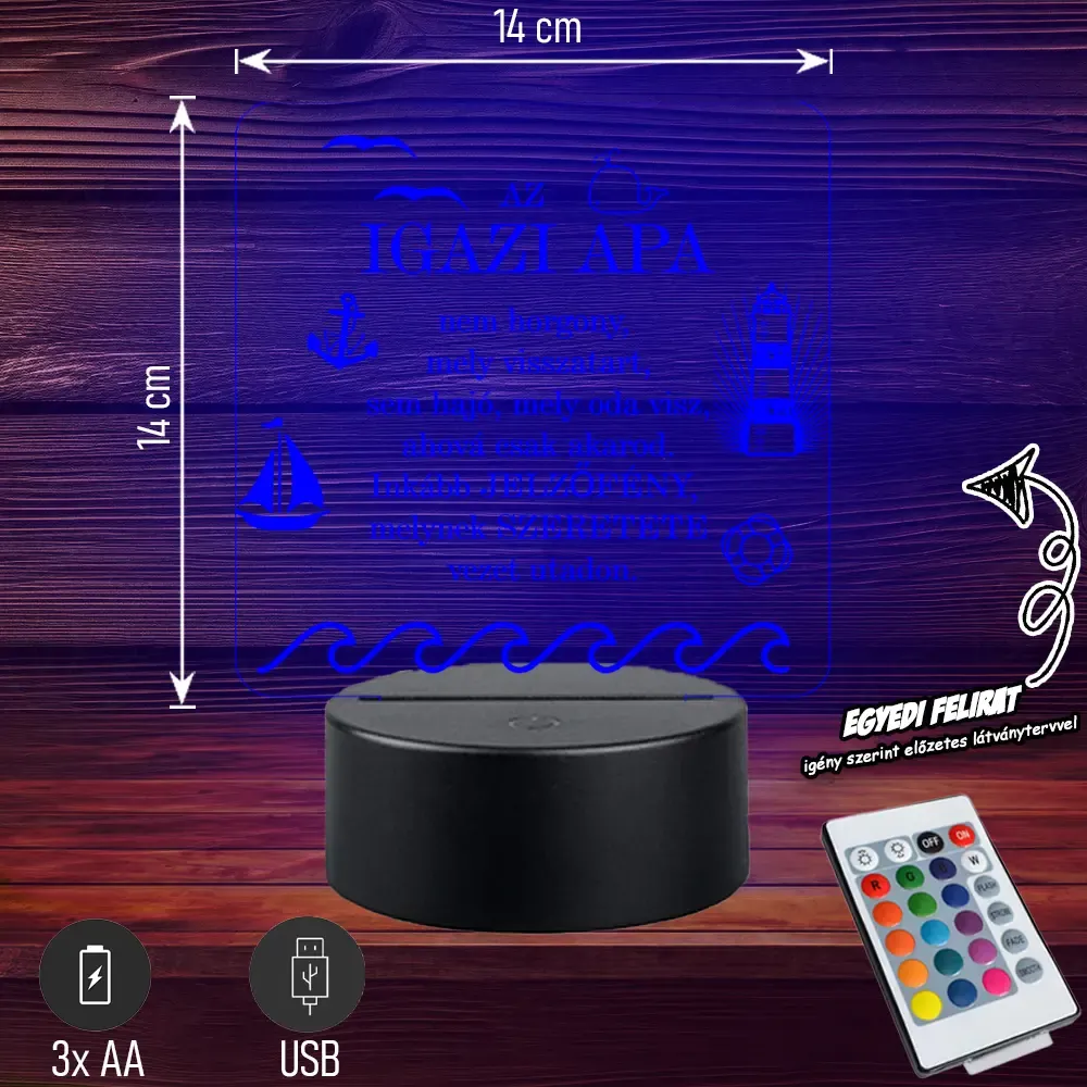 👑💡 Egyedi 3D LED lámpa „Az igazi APA” felirattal 🎁 Tökéletes, különleges ajándék, amivel kifejezheted szereteted Apukád iránt! 👨👧👦 Bővebben| Cikkszám | GM3DAA08 |
