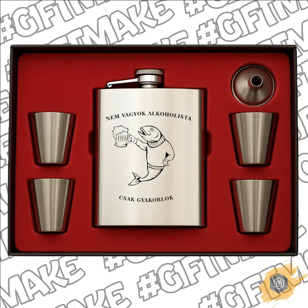 😂🥂 Nem vagyok alkoholista, csak gyakorlok | Gravírozható Flaska Szett 🎁🍷 – 210 ml-es rozsdamentes acél flaska 4 pohárral és tölcsérrel, elegáns díszdobozban. Tökéletes ajándék barátoknak, apáknak vagy vicces meglepetésnek! Bővebben| Cikkszám | FLSZAA05 |