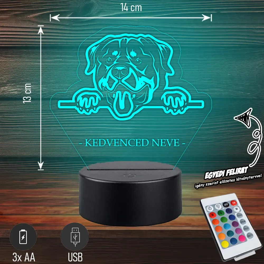 Rottweiler - 3D LED LÁMPA - Egyedi felirattal