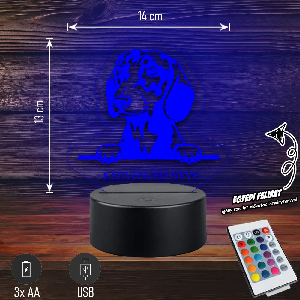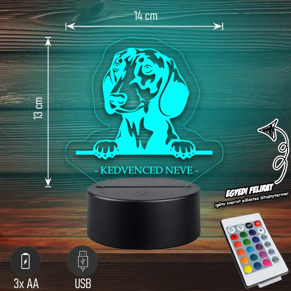 Tacskó - 3D LED LÁMPA - Egyedi felirattal